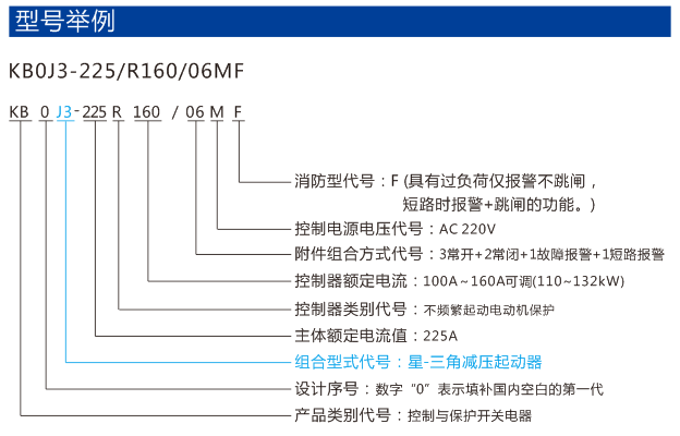 適用于電動機星-三角減壓起動的控制與保護,以KB0產品作為主開關,與塑殼斷路器、可逆接觸器、時間繼電器、電氣聯鎖及控制回路組合構成星-三角減壓起動的控制與保護裝置。