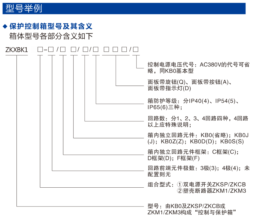 其以KB0作為主開(kāi)關(guān),配用不同的防護(hù)等級(jí)箱體,可構(gòu)成防護(hù)等級(jí)為IP40、IP54、IP65等多種等級(jí)的保護(hù)控制箱ZKXBK1,適用于戶(hù)外以及遠(yuǎn)程單獨(dú)負(fù)載的控制與保護(hù)。由KB0、KB0-F、KB0-G、KB0S3、KB0D、KB0N、KB0J、KB0J2、KB0Z等組合構(gòu)成單回路、多回路等多種形式;根據(jù)需要,在箱體面板上可配備選擇開(kāi)關(guān)、旋鈕、按鈕、信號(hào)燈等。與傳統(tǒng)的各種保護(hù)箱、綜合式、電磁起動(dòng)器相比,具有體積小、重量輕、操作安全可靠、接線便捷、防護(hù)等級(jí)高等特點(diǎn),且可以選擇就地控制、遠(yuǎn)程控制和二者兼有的方式進(jìn)行操作,是替代傳統(tǒng)產(chǎn)品的極佳選擇。